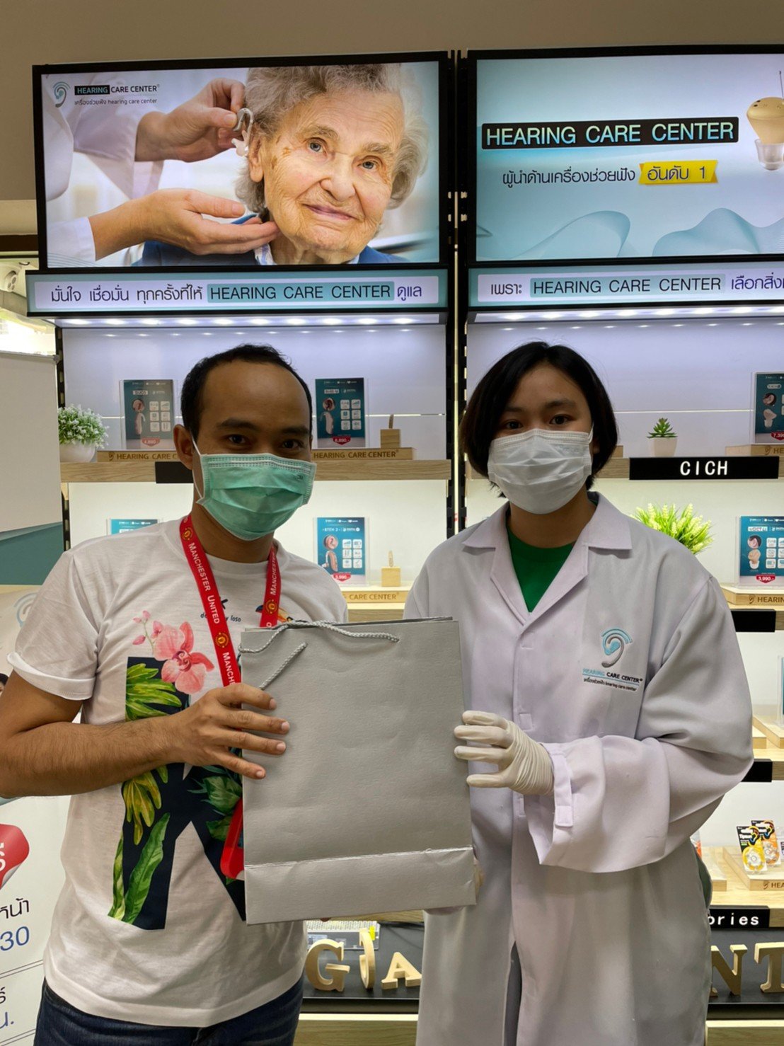 มาถึงทางร้านได้มีการสอบถามประวัติการสูญเสียการได้ยิน และให้ทดลองเครื่องหลายๆ รุ่น ผมอยากได้เครื่องแบบเล็ก ๆเพราะไม่อยากให้เพื่อนร่วมงานรู้ว่าผมมีปัญหาการได้ยิน มันดูเสียบุคลิก เลยได้เครื่องแบบในช่องหูมา ตัวเครื่องเล็กมากกกก ตอนแรกยังนึกเลยว่ามันจะหลุดเข้าไปในรูหูไหม แต่ที่ร้านให้ลอง และได้ลองเดิน วิ่ง กระโดด ปรากฎว่าเครื่องไม่ขยับเลย ประทับใจมาก